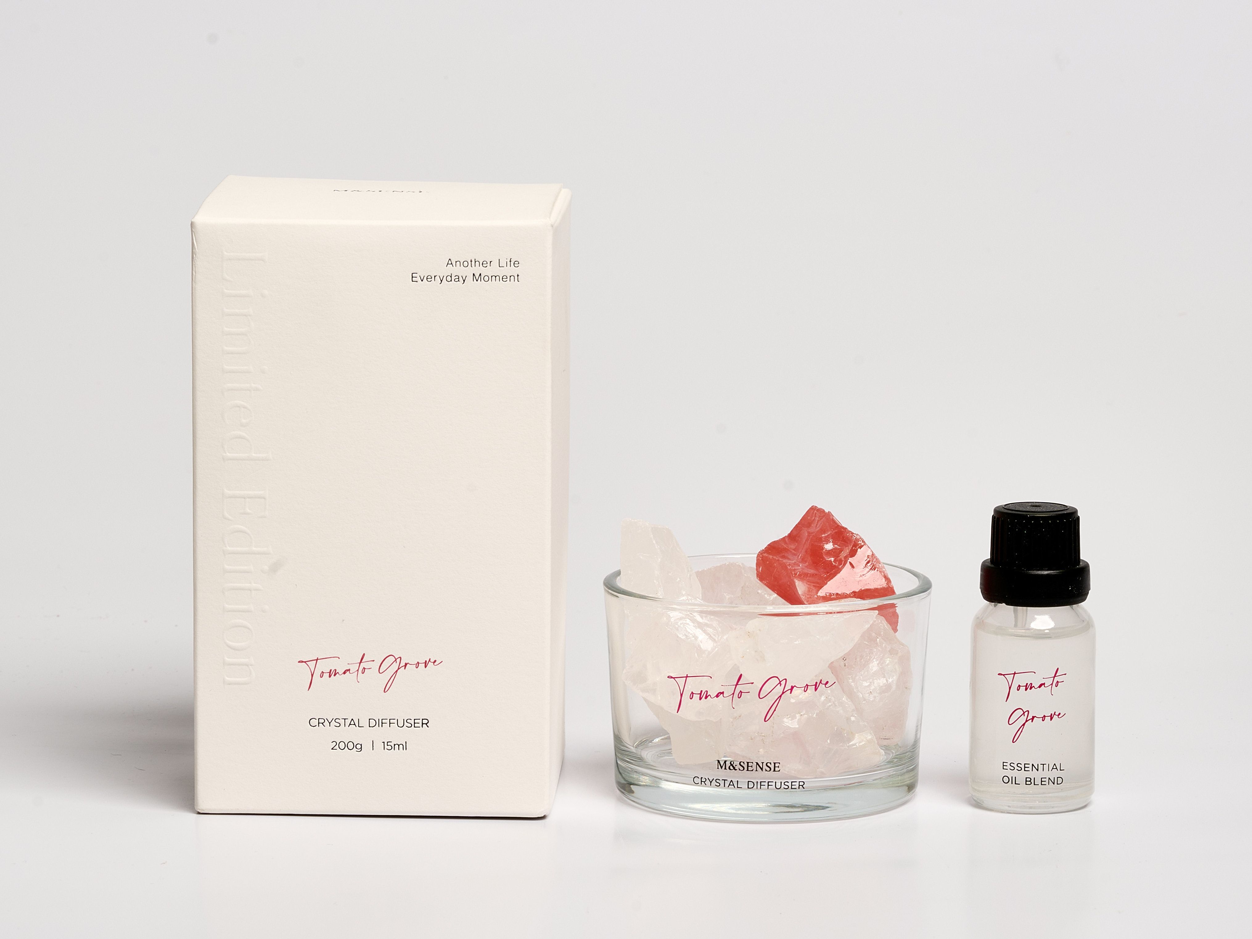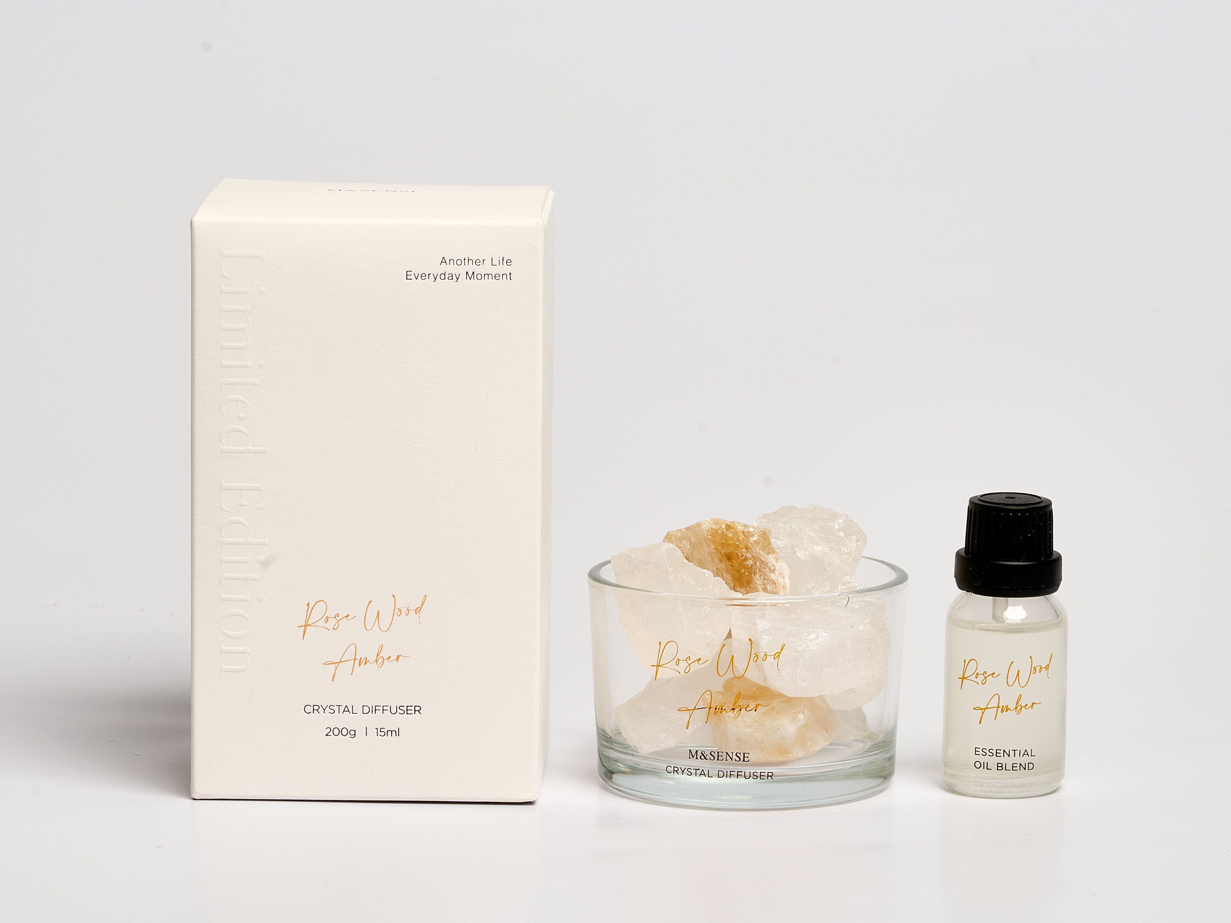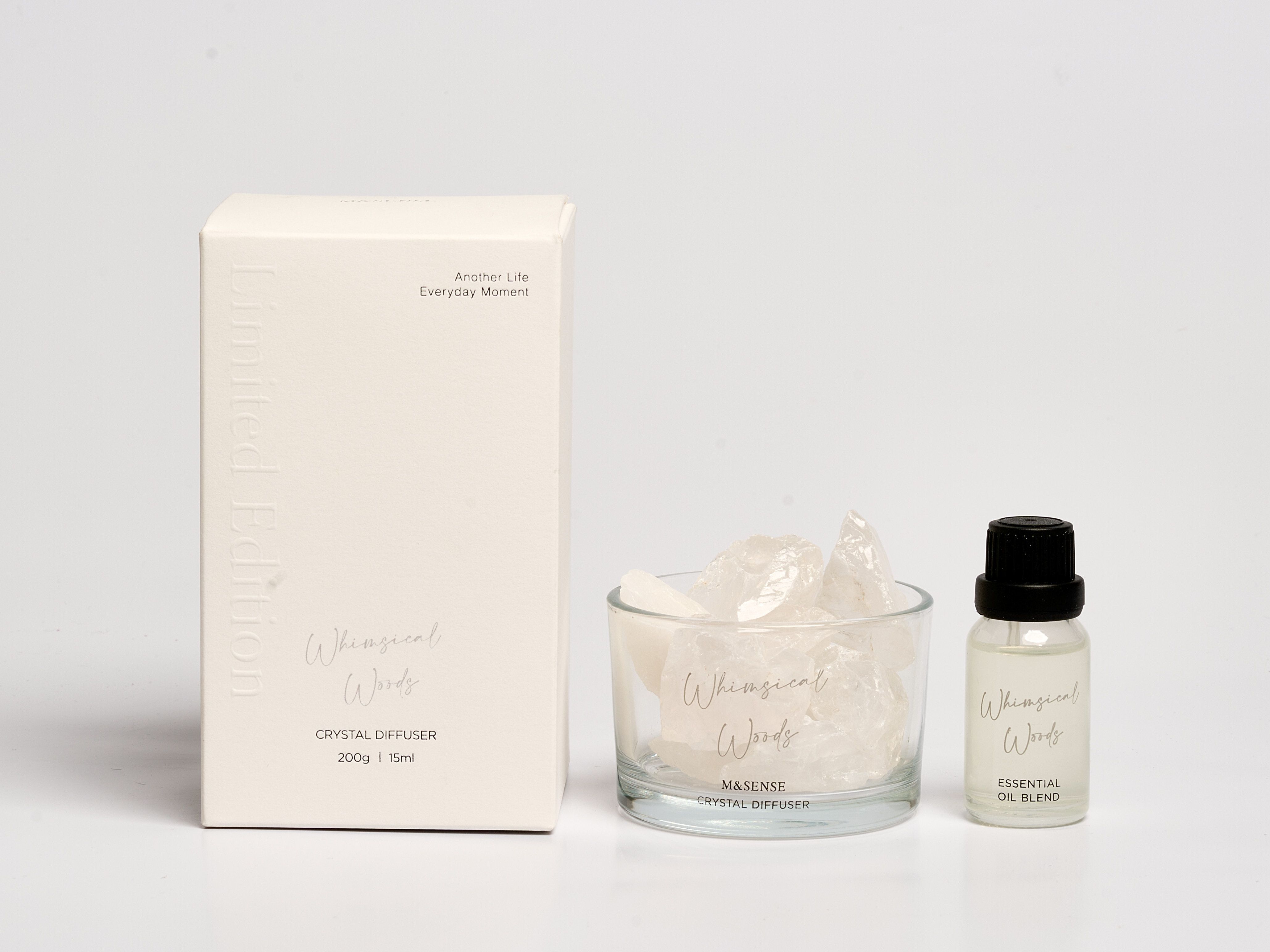El cristal blanco brumoso como piedra principal, adornado con una variedad de piedras de cristal naturales, y el color principal del empaque hacen eco, un difusor de cristal simple pero no monótono, es la mejor combinación para la búsqueda de una vida minimalista.